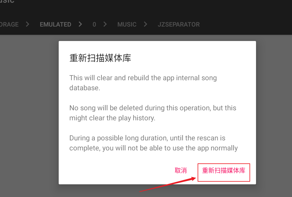 4、只需一键点击,即可重新扫描媒体库,获取本地音乐资源。