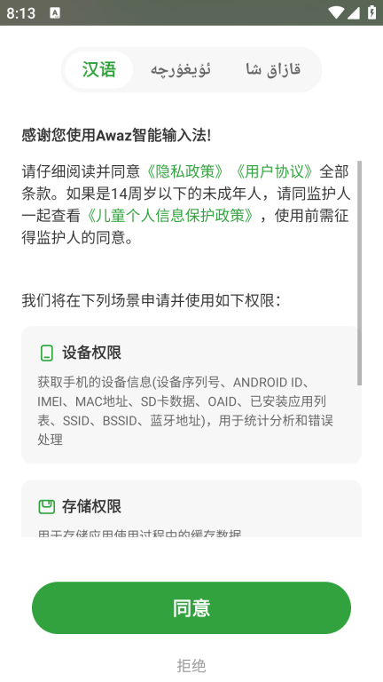 3、在输入法应用墙中,有多款支持维吾尔语、汉语、哈萨克语、克尔克孜语等多种语言的语音输入法手机应用。