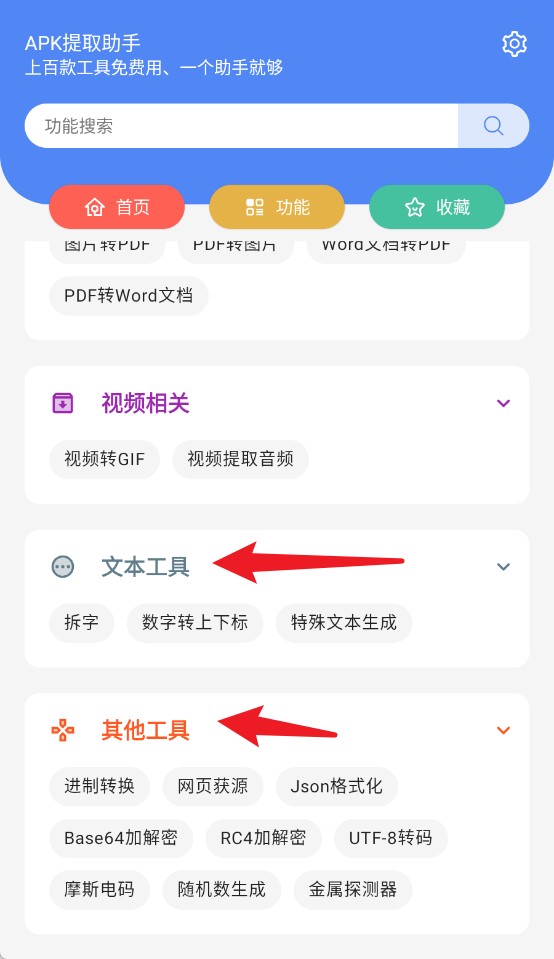 4、文本工具与其他工具进行整齐归类,具备拆字、加密、转码等多样实用功能,操作方便快捷。