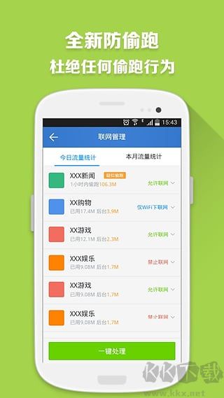3、杜绝偷跑流量:精准甄别在后台消耗流量的应用程序,防止流量在用户毫无察觉的情况下被无端耗费。