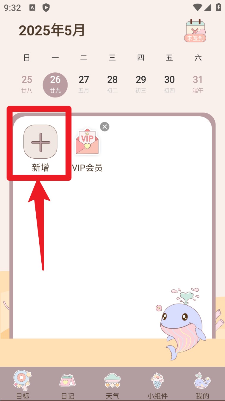 1. 当进入App首页后,在底部导航栏里点击「目标」,接着点击左上角的「新增」按钮,以此准备添加新的目标。