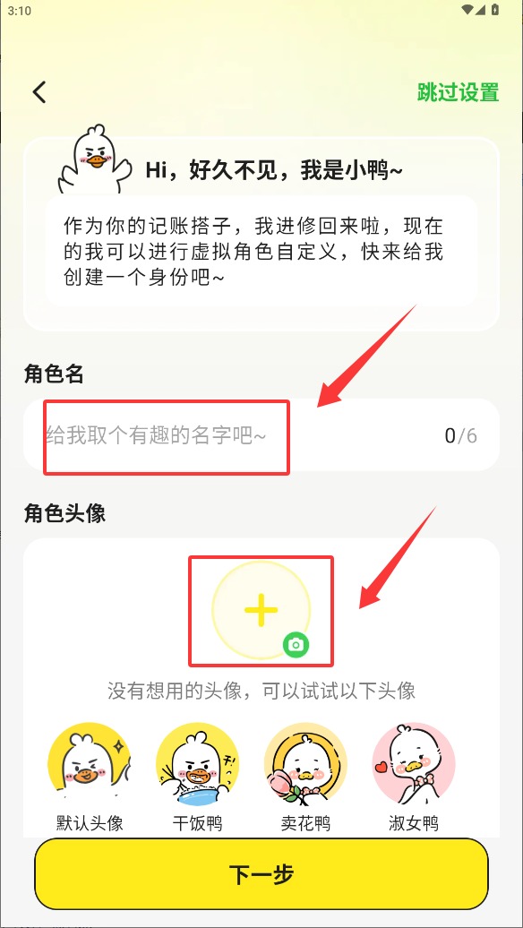2、为自己挑选一个有意思的昵称,同时上传独具个性的头像,塑造专属于你的虚拟记账小助手形象。
