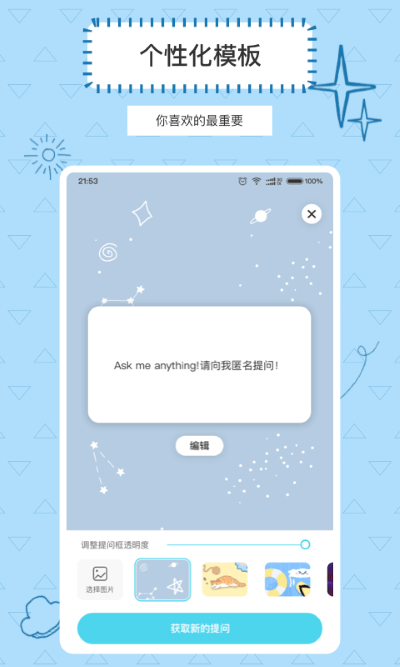 2、独特的互动体验,把提问箱链接分享至设计平台,就能获得好友的匿名提问。