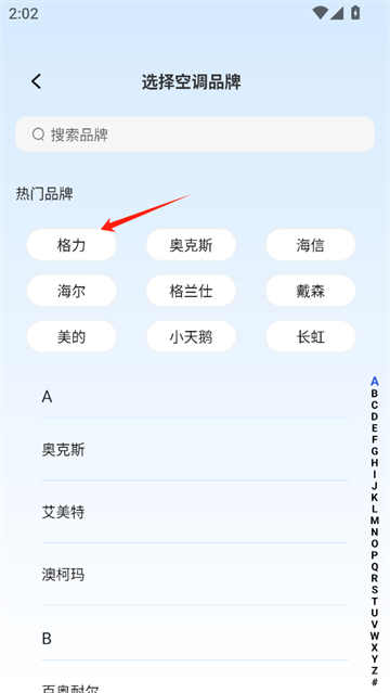 2、以格力空调为例设置空调,首先选择空调的品牌。