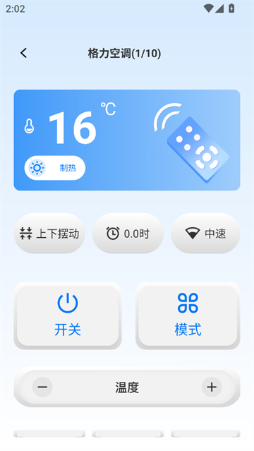 3、点击开始调试,调试完成后,将会进入此界面,这时便能够控制空调了。