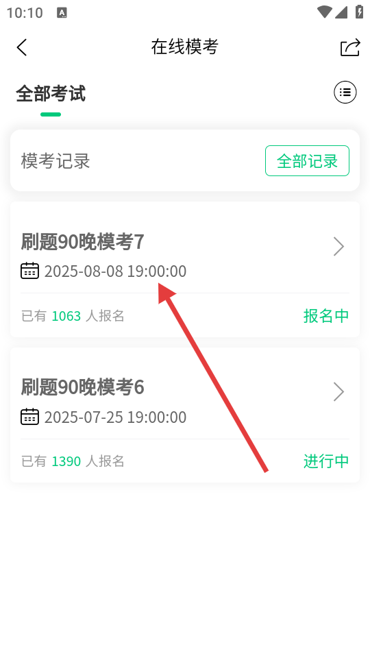 2、挑选我们想要练习的板块,点击进入,这里以【刷题90晚模考7】作为示例。