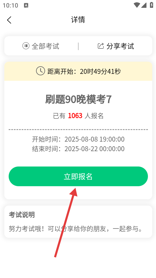 3、随后进入模考详情页面,点击页面里的【立即报名】按钮。