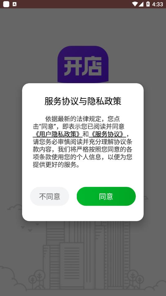 1、下载并安装软件后启动,然后点击同意服务协议和隐私政策。