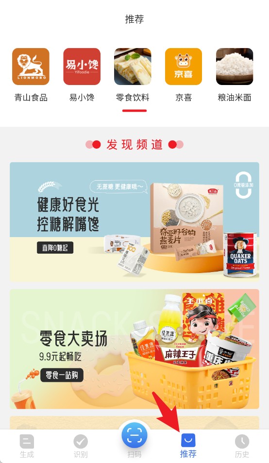 3、推荐页面展示零食饮料、电商平台品牌及热销商品,用户可以直接查看相关商品的详细信息,并支持快速选购下单。
