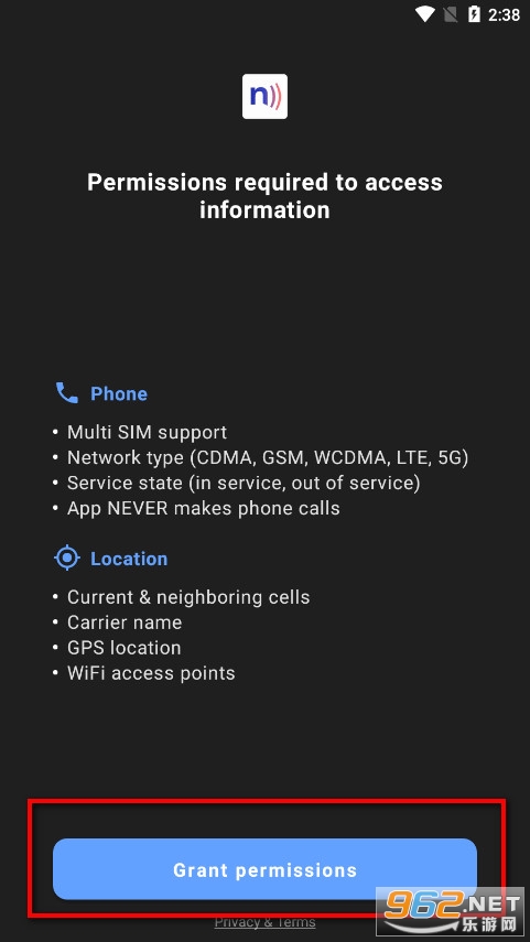 电话功能 - 支持多张SIM卡。可获取网络类型以及服务状态。应用程序不会主动拨打电话。