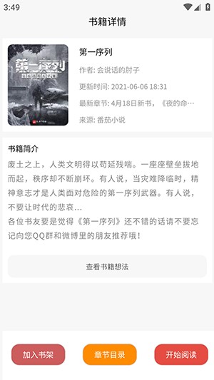 3、点击相应小说,进入详情页面后,可选择开始阅读或者添加至书架。