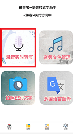 - 开启App,然后点击“录音实时转写”