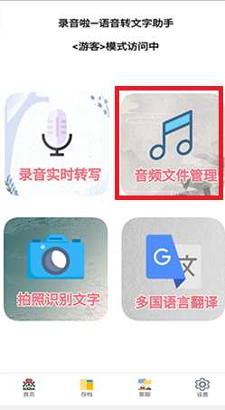 - 点击“音频文件管理”,随后导入录音文件。