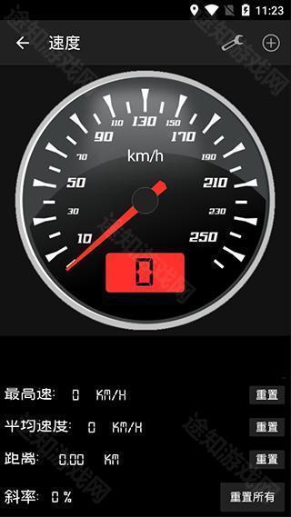 2、测速仪:需要启用GPS,测试最高速度、平均速度、距离。