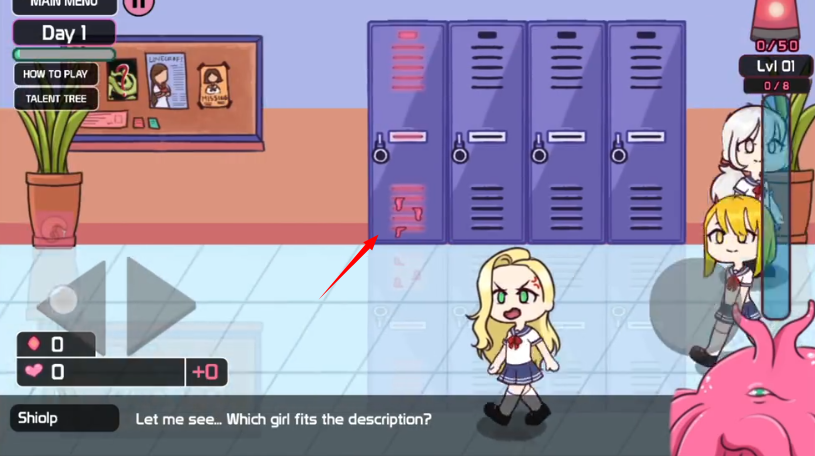 3、柜子查看方法说明:正常打开柜子就能查看里面。玩法说明:留意经过柜子的女生表情,若有女生脸色发红,按下space键,接着就能用口香糖将女生锁住。