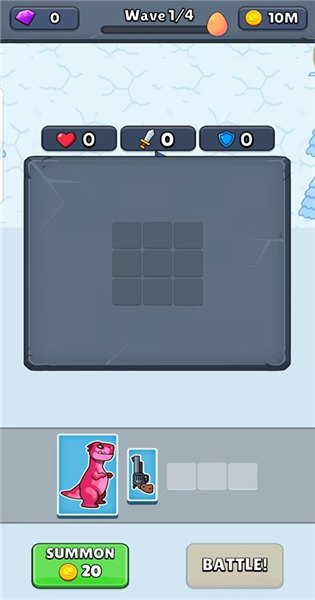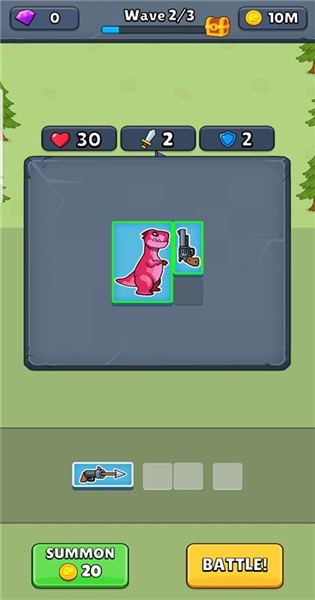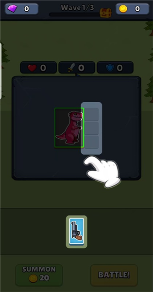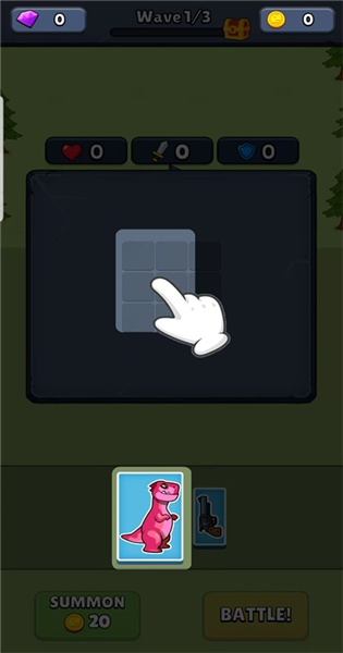 3. 在网格里对恐龙与武器进行排布,通过合理布局,塑造一支势不可挡的恐龙精锐部队。