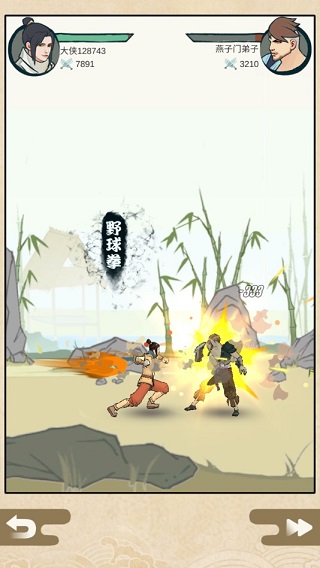 在“挑战”板块中,各章节对应的关卡数量各异。点击关卡便会自动开启战斗,同时你还能更换武学,无论是想用手掌、拳头,亦或是用脚施展都没问题。关卡依序解锁,完成特定关卡后,除了能习得新武学,还可获取额外功力。功力与战力皆和武功等级挂钩,等级越高,产出越多。若想提高功力产出倍数,不妨来进行闭关修炼!