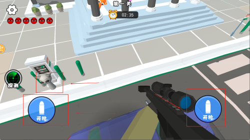 3、进入地图之后,通过滑动屏幕来瞄准音乐人,接着点击开枪,当达成关卡要求时,就能通关。