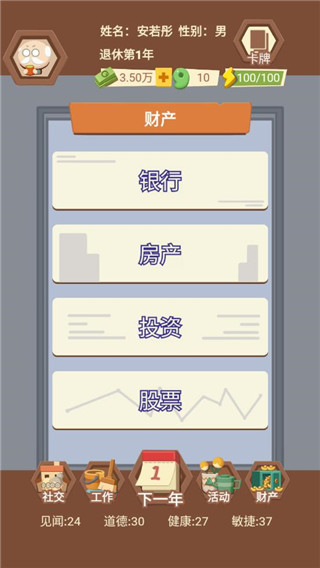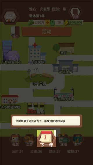2、至于所说的退休生活,自然是随心所欲,想做什么就做什么。要是您感到疲倦了,还能点击“下一年”,快速推进时间呢。
