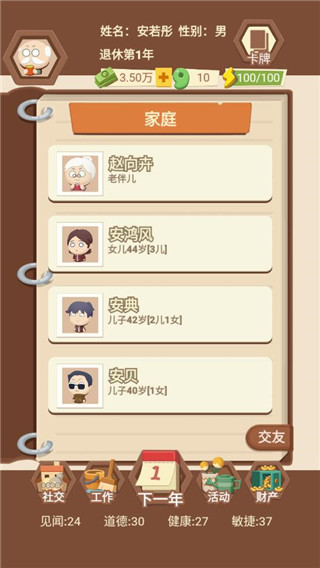 玩家也改变了老人的性格,不断模拟退休生活。不同的角色有不同的生活