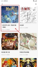 4、在动漫类创作列表里,点击《异世界之旅》漫画的封面,即可进入该作品的详情页面。