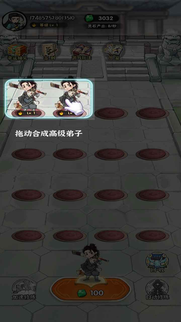 2. 合成规则是把两名等级相同的弟子进行融合,从而生成等级更高一级的弟子。