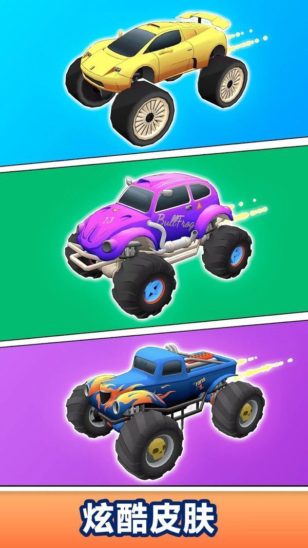 2、驾驶威猛的怪物卡车去碾压小汽车与各类障碍物,尽情体验破坏带来的畅快感受。