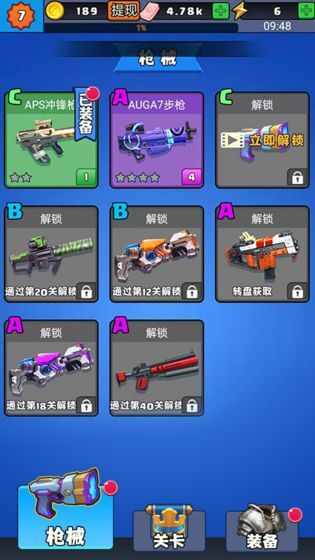 3、所提供的武器种类较为有限,主要是依靠等级提升、签到转盘以及解锁钻石这几种途径来获取。