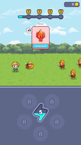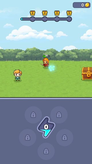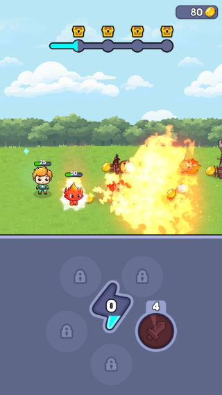 1. 如下图所示,一旦敌人靠近,英雄与精灵便会自动发起战斗。