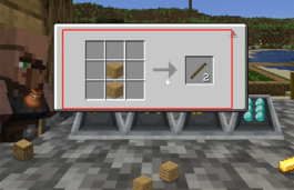 10,把分解得到的四个方块放进合成台的两个格子里,合成出两根木棍。