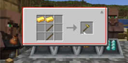 11、将从炼金台获取的两个金块放进合成台,接着放入两根木棍,合成一把金锄头。