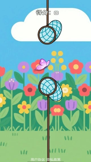 3、用手指滑动屏幕来操控捕网移动,灵活地追逐飞舞的蝴蝶并完成捕捉。