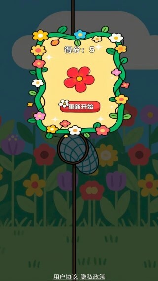 4、每局游戏都有时间限制,结束后会依据捕获到的蝴蝶数量来结算得分。