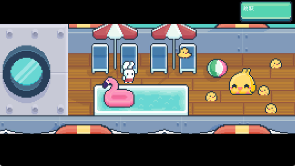 1、像素风格的画面萌趣又治愈,小兔子的形象可爱灵动,场景色彩明快鲜亮,还有飘动的花瓣等充满活力的细节点缀其间。
