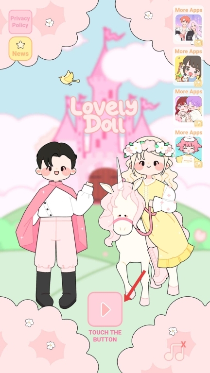 1、打开游戏后,点击那个粉色的播放按钮,就能开启一场可爱风格的装扮冒险之旅啦,你可以在充满童话感的场景里,打造出专属于自己的独特形象。
