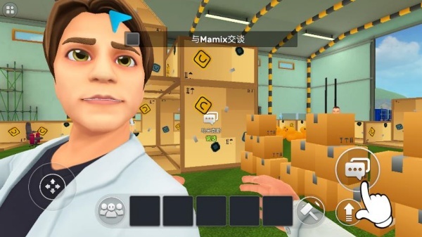 2、刚进入这个实验室时,你得和Mamix进行交流,直接点击右侧的短信方框就行。