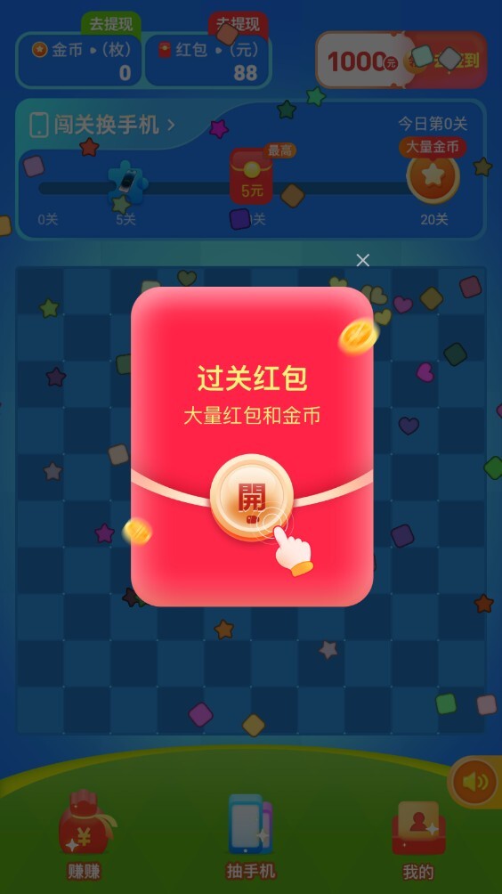 2、把所有方块都消除完就能过关,然后领取红包奖励啦。