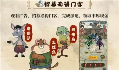 一个人的信息最多能绑定三个游戏账号,通过每日签到、限时任务、成就任务以及福利任务,都能获取元宝和各类材料。观看广告进行招募时,必定能得到凡品门客,同时还有一定概率获得极品门客,而且门客的品质越好,产出的材料数量就越多。