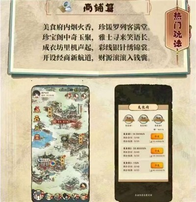 用银两租用美食府、成衣坊、珍宝阁这类商铺,每日会根据食材、布匹、玉石等不同物资的消耗数量,相应产出银锭。