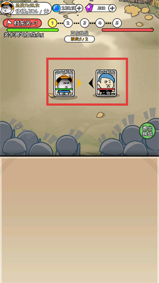 1、在【村东头-2】位置点击【挑战】按钮,即可触发与敌方角色的对战,以此推进【村东头-1】的关卡进度。