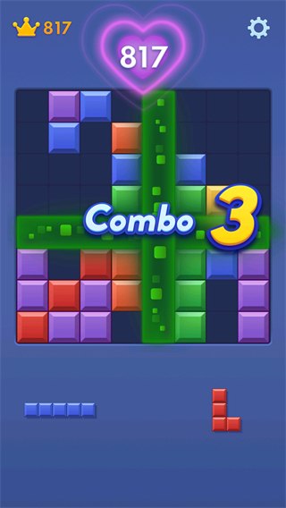 3.当某一行或者某一列被彻底填满时,这些方块便会自行消除,同时给玩家增加相应的分数。