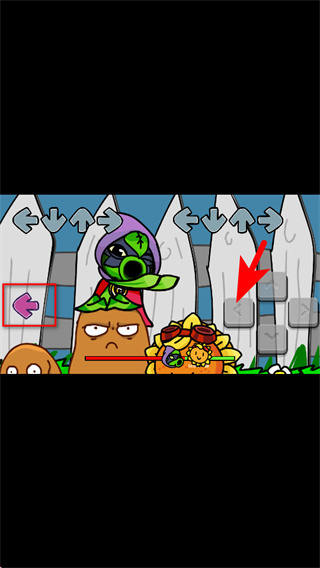 2、在游戏里,你可以跟着红色箭头的提示,通过操作左边的方向键来控制角色移动,调整植物的摆放位置,与此同时还要留意场景的布局情况,提前规划好移动的路线。
