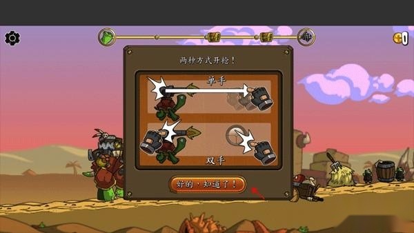 5、开枪的方式有两种,一种是单手点击枪支,另一种是双手操作,在了解清楚之后点击确定按钮即可。