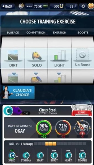 3、参与比赛时可选择本地赛事或巡回赛事,借助策略性的安排,使赛马在比赛中发挥出最佳水平。