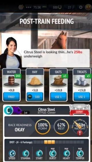2、赛马的挑选、训练与培养工作,涵盖速度、耐力、爆发力等多方面属性的管理。