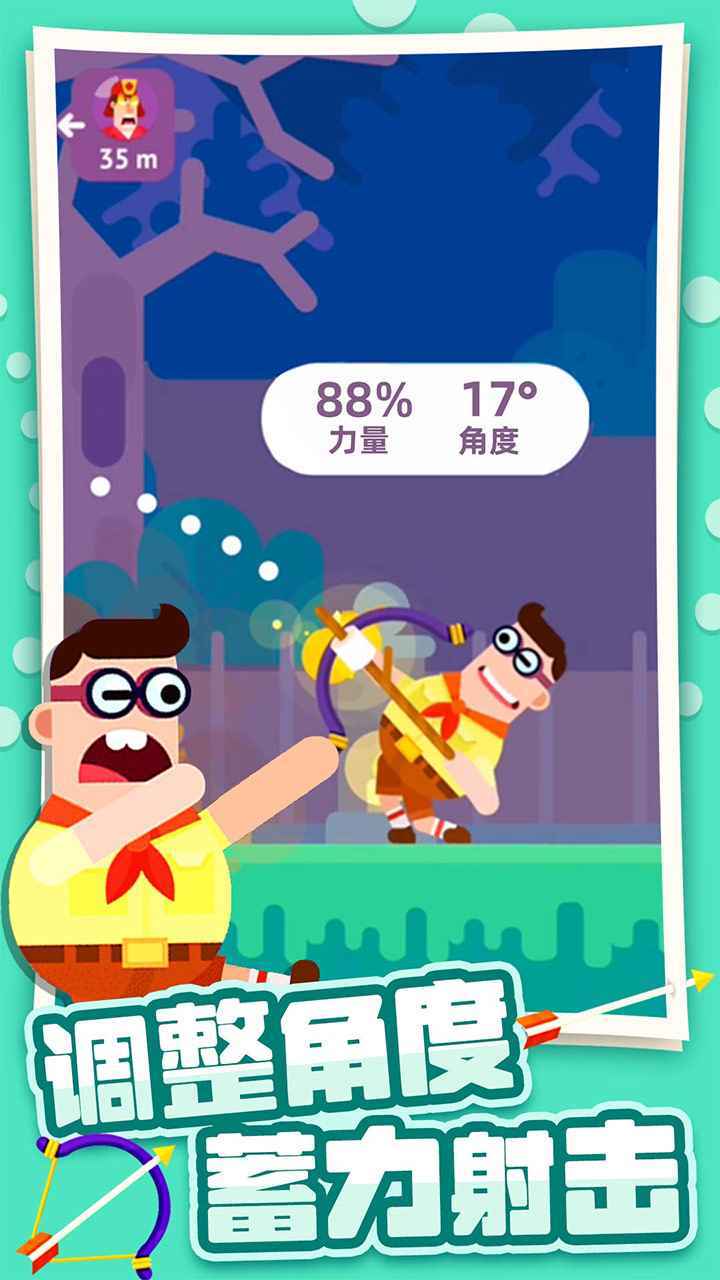 3、清新的卡通风格搭配精美的3D图形,只需轻轻一点就能生成弓箭,助你完成任务。