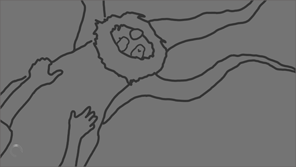 用极简的线条和灰度的画面,模拟患者模糊而褪色的视觉体验,以此来加深孤独的氛围。