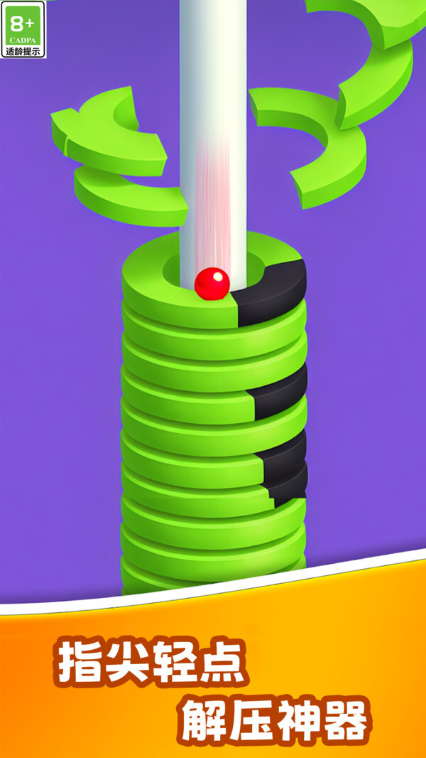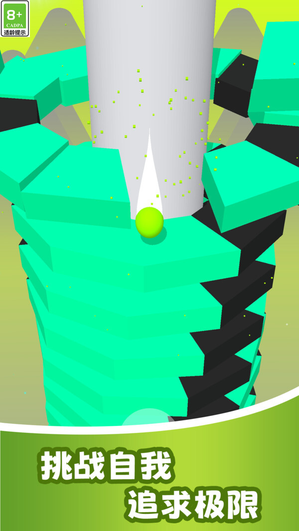 3、小球的建模简洁流畅,再搭配上轻快的音效,比如小球滚动、平台破碎的声音,整体都很富有趣味性。