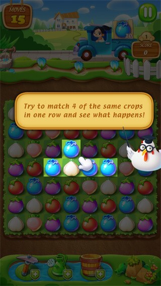 《狂热花园3》属于休闲闯关系列的消除游戏。游戏里为玩家准备了大量关卡供其尽情挑战,整体采用田园卡通画风,塑造了十分可爱的蔬菜形象。玩家需通过交换操作消除三个及以上相同物品,完成关卡任务目标即可闯关成功,进而获取更多奖励解锁道具,助力自己更顺利地闯关。