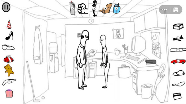 17、文件柜-员工打开文件柜,老板会持续查看文件(除非你再次点击文件柜,届时将触发真正的击杀环节),随后员工用文件柜猛砸老板头部,最终老板的头掉了下来。(击杀后的动画:员工开始听音乐。)